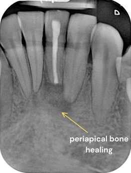 - Large periapical radiolucency measuring 12.4mm at the widest width.